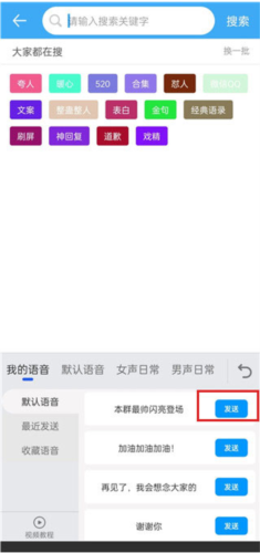 2、选中要发送的语音,点击发送即可
