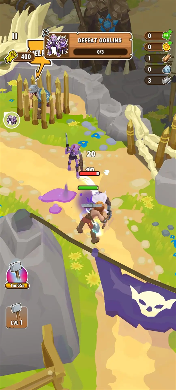 维京人的复仇,一款休闲娱乐的冒险养成类RPG手游。你的家园被邪恶的哥布林入侵,你的人们每处于危险当中,而你则要率领自己的维京伙伴一起击退这些哥布林,并收集资源来升级自己的武器,让你可以战胜更加强大的敌人,守卫村庄的安宁!不断解锁更多的场景区域,探索更多丰富的资源,享受更加刺激有趣的冒险乐趣!