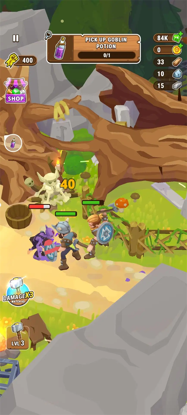 2、召集更多不同类型的维京战士,组建你的冒险小队,一起同邪恶的哥布林进行战斗。
