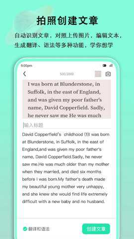 2、用户可以通过拍照上传英文来进行语法分析,查询词典,或进行语法分析和翻译,方便学习更多的内容。