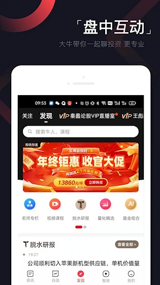 3.在【发现】里能看到各大名人的讲解以及脱水研报