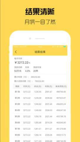 点击计算按钮,app会根据输入的信息进行计算,显示出每月需要偿还的贷款金额、总利息等信息。