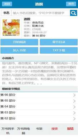 万书网中收录了海量小说资源可以免费阅读,七猫小说、番茄小说、起点小说、晋江文学等热门小说网站的小说都有,小说资源丰富,都市、仙侠、言情、玄幻、悬疑等等都能找,内置小说搜索功能,感兴趣的小说直接搜索小说名就能找到,不需要登录,不要会员,点击即可阅读,不用担心自己小说荒。