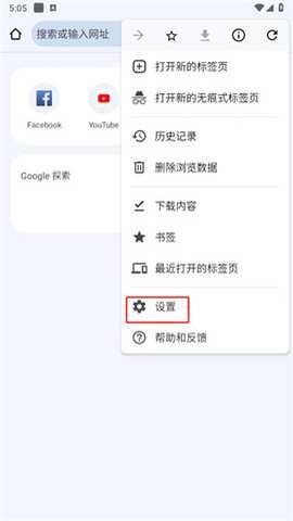 在Chrome浏览器主界面,点击右上角的更多按钮,在打开的下拉菜单中,点击设置菜单项。