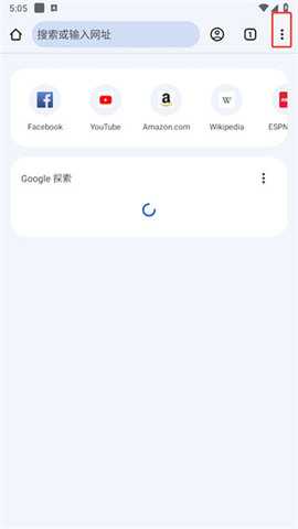 1、首先打开chrome软件,进入到首页中点击右上角的【三点图标】;