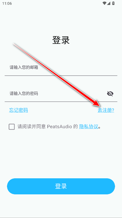1、在本站下载并打开peatsaudio耳机app,点击同意相关协议