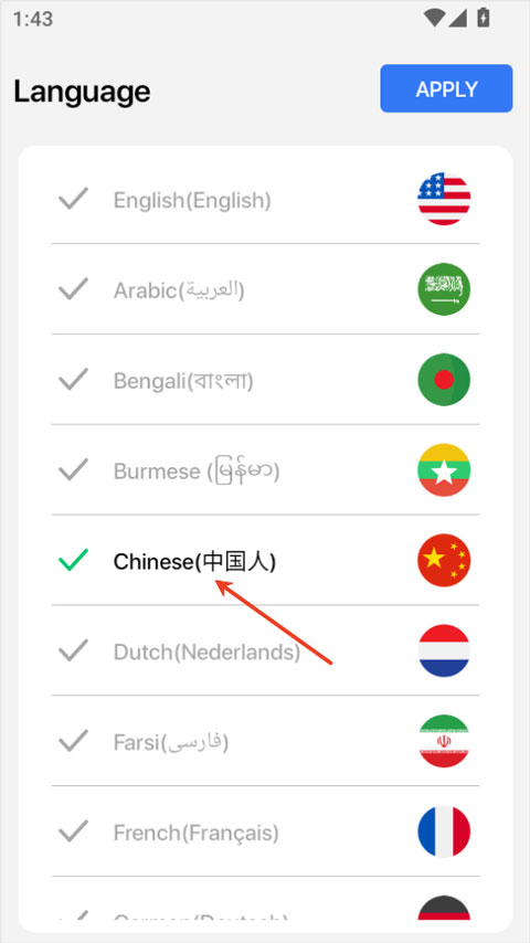 1、在手机上打开灵动岛pro最新版本,首先选择你需要的语言。
