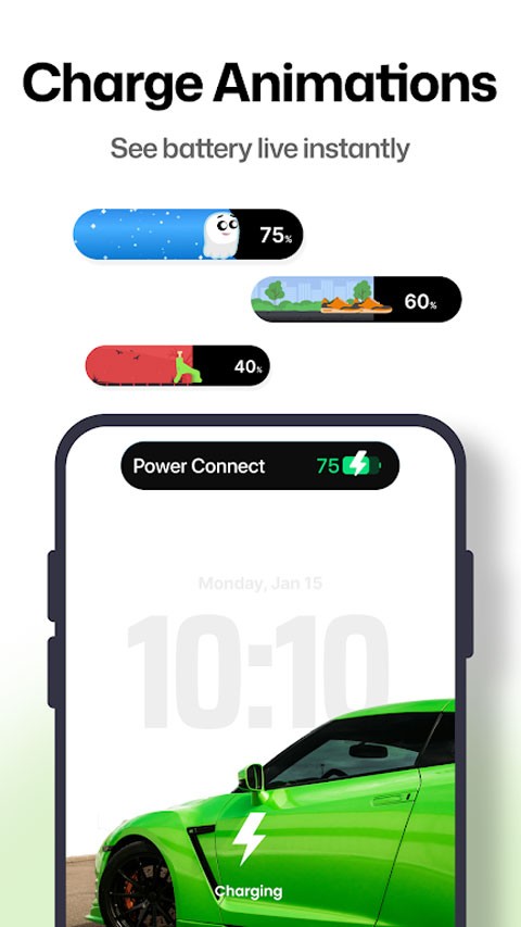 4、充电动画个性化:支持接入充电时显示电池状态与充电百分比的动效画面。部分版本还可自定义动画主题与视觉效果,充分满足用户的个性化审美需求。