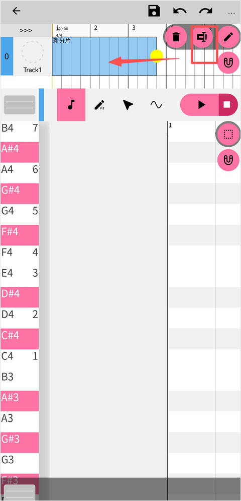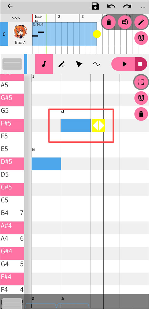 5、长按音符旁边的磁铁图标,可以调整音符的时值长度。
