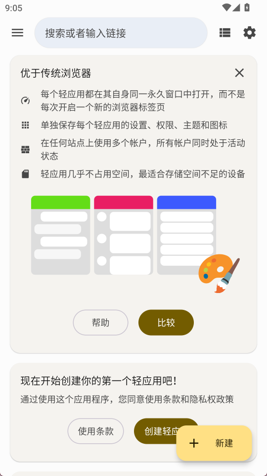 1、网页转应用:输入网址即可生成独立图标,无需安装大型本地软件即可使用网站服务。