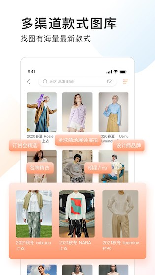 2、高清款式图库:汇集秀场与订货会精选图片,提供海量高清素材供设计师检索浏览。