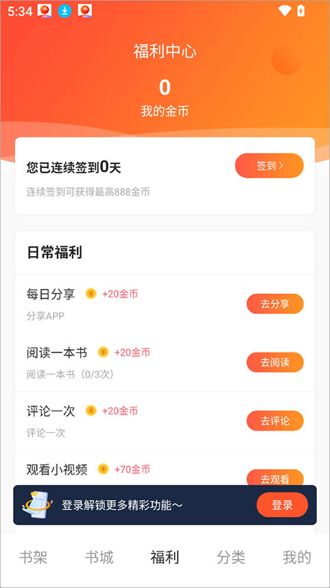 3、此外,app还支持通过每日签到、阅读小说、评论分享等互动行为获得平台福利。