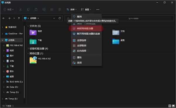 然后在电脑上,你可以通过浏览器访问该 FTP 地址,或采用映射网络驱动器的方式进行访问。操作路径为:打开资源管理器 → 工具栏 → 映射一个网络位置。