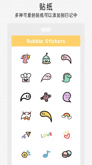 1、海量贴纸库:内置上百款原创可爱贴纸,覆盖节日与生活场景,无需额外下载即可丰富日记内容。
