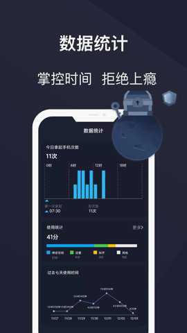 4、集合了高效锁机、定时、监督、番茄任务、疲劳提醒和数据统计等多种管理方法,帮助用户更好地管理手机使用。