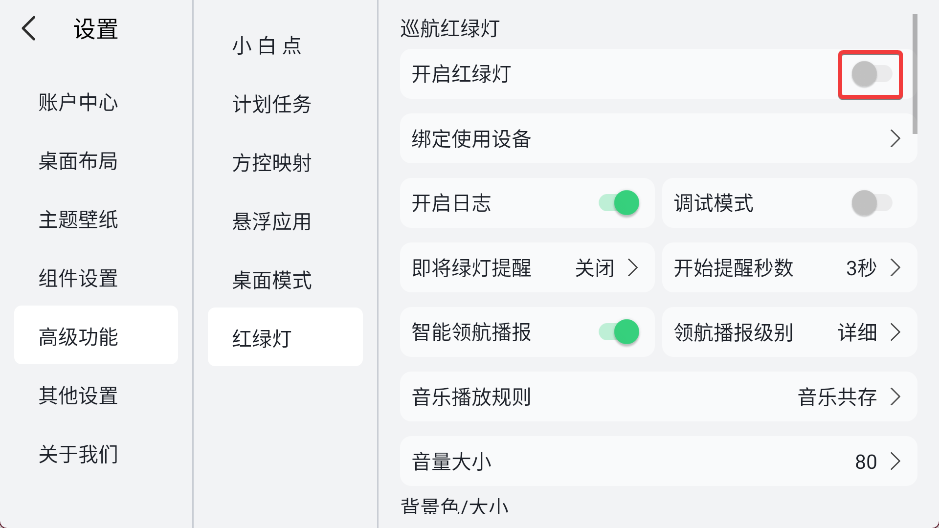 4、优化红绿灯播报音乐冲突设置(共存,压低,暂停音乐,自选通道)