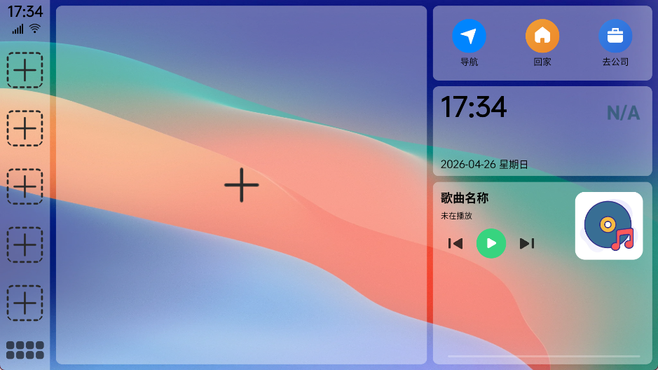 2、Dock快捷栏:左侧区域可添加导航、音乐等高频应用,一键启动减少操作步骤。