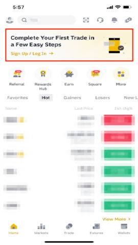 1. 打开币安 App,点击【注册】。