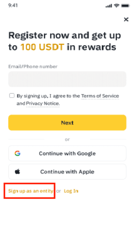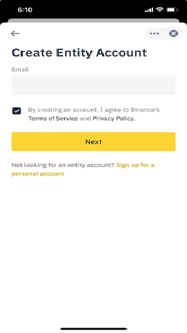 币 安交易所企业账户注册流程: