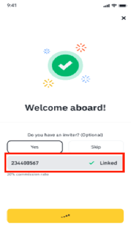 如果您通过邀请链接注册币安账户,系统将自动填入邀请码,旁边会显示一个绿色对勾图标和【已绑定】。如果邀请码无效,您可以进行编辑或输入其他邀请码。请注意,邀请码与您的账户绑定后,将无法修改。
