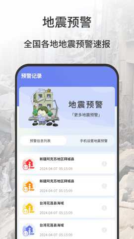 地震报警器是一款地震预警防护app,通过软件可以有效知晓地震具体位置级别,快速的为您查询在最短的更新带来世界各地最新最全地震资讯。会提供相关的灾害预警信息,您就可以知道相关的灾害内容。全面的防震减灾科普资料,以及必要的逃生知识,一款专业的地震预防护软件。