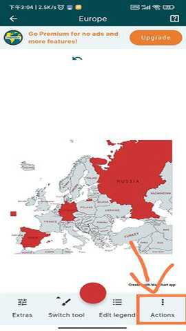 2.确保地图编辑完成后,点击app右下角“Actions”按钮;