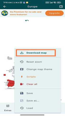 3.然后再弹出的功能条中点击选择“Download map”并给保存的地图进行命名;