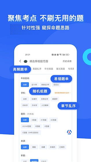 1、海量题库:收录近33年医学类真题,涵盖护理、临床、药师等科目,支持按考点筛选。