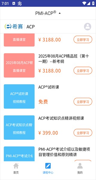 4、课程中心板块包含视频与直播课程,可直接进入学习。