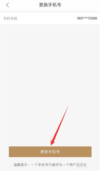 3、随后,跳转页面后,点击底部的“更换手机号”按钮进行更换。