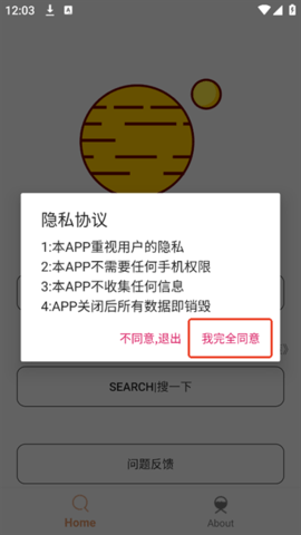 1.在本站下载并打开飞土搜,阅读并同意隐私协议