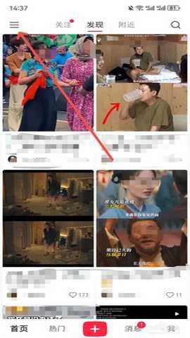 先打开小红书软件,点击左上角【三条杠】