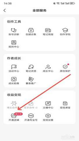 最后,打开全部服务页面,点击【开通店铺】按钮,就可以在小红书上开店铺