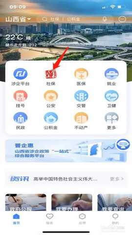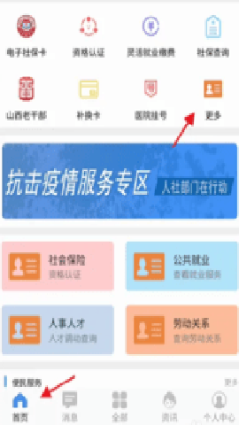 填写完成,进入民生山西APP首页,点击上方的更多进入