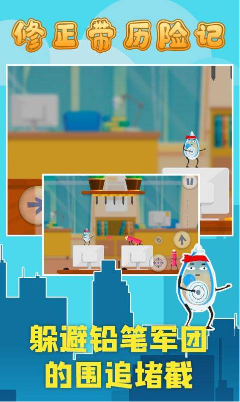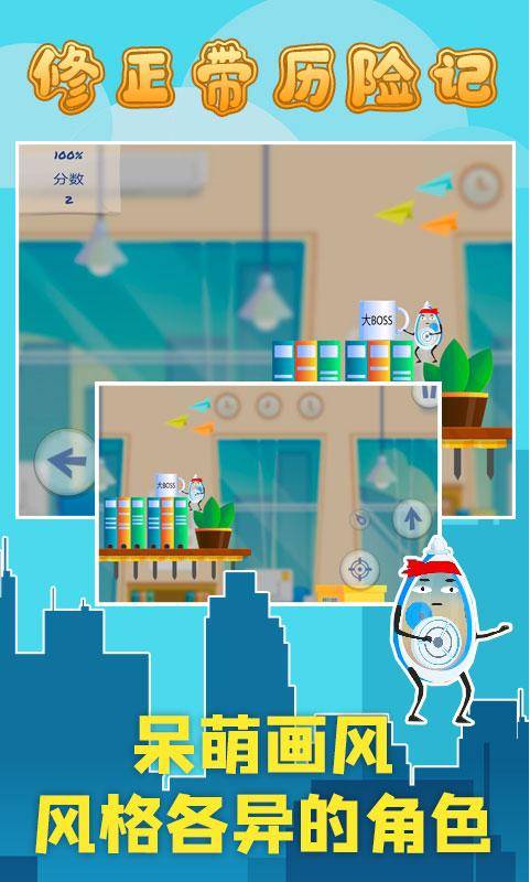 1. 操控修正带:玩家通过触屏操作控制修正带移动、跳跃和攻击。