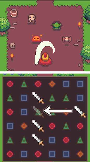 Match And Rogue游戏以合成消除为元素打造的,你是一名勇士,置身于阴森恐怖的地牢中,身边全是那些可怕的怪物们,你需要找到相同的元素合成,然后升级强大的武器装备,来消灭那些怪物,准备好了,快来开启一场地牢的冒险之旅吧。