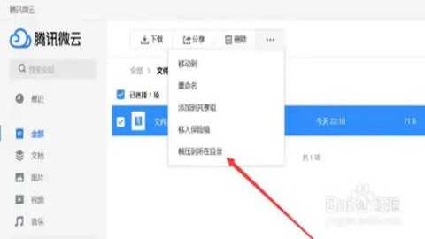 3、点击上方的“···”,在弹窗中点击“解压到所在目录”。