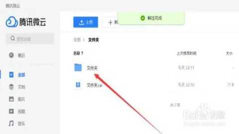 1、在腾讯微云的首页,点击进入压缩包所在的“文件夹”。