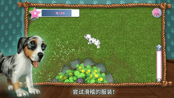 3、在各个有关的挑战过程中,能够让玩家体验到不同的玩法类型,与小狗们可以及时互动提升等级。