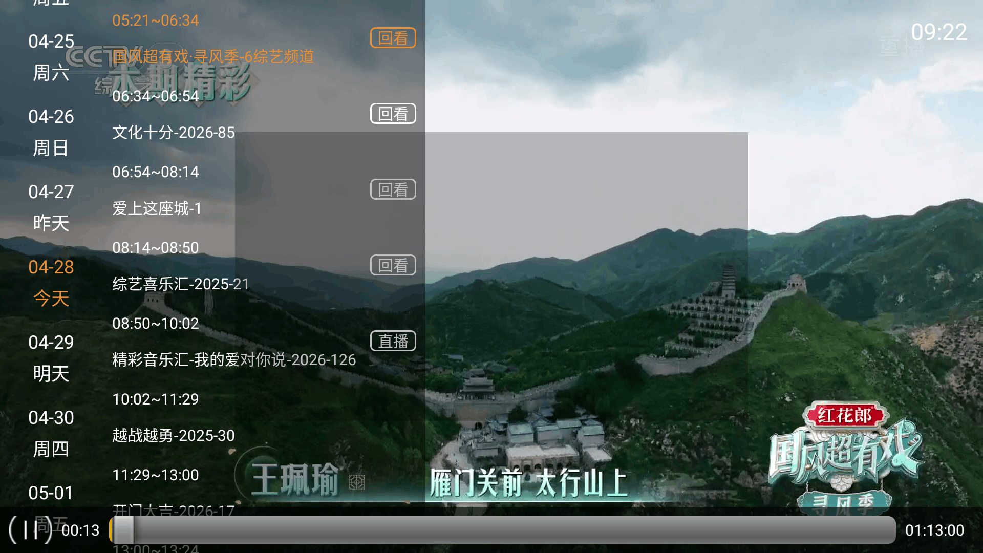 3、内置央视卫视节目回看功能,用户可以随时回看错过的节目,不再担心错过精彩频道。