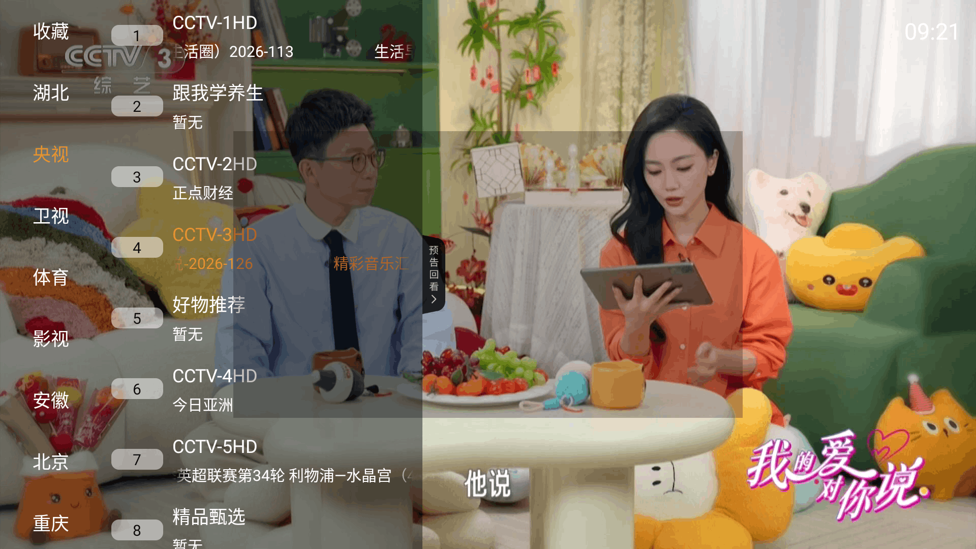 3、在菜单内选择自己喜欢的电视节目即可。