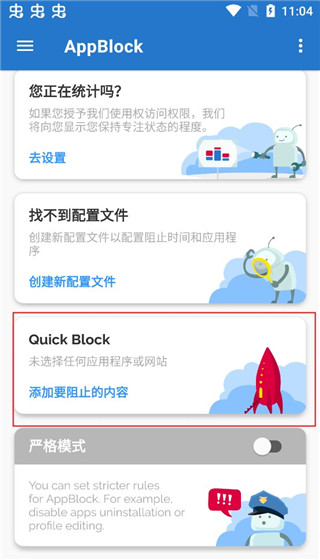 1、进入appblock软件,选择“Quick Block”快捷屏蔽模式。