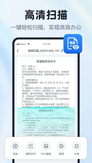 3、边缘自动裁剪:拍摄时自动检测文档边界,去除背景干扰,直接生成干净扫描件效果。