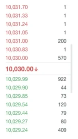 下单后,系统将会自动开始进行定时的分批委托,假设当前时刻的盘口情况如下图: