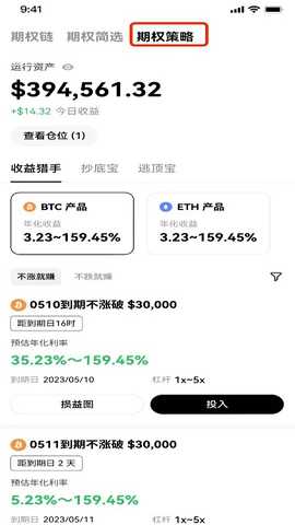 在期权页面中,选择收益猎手策略。
