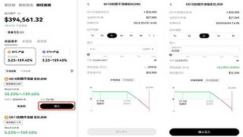 点击投入,进入下单页面,选择投入的资产,可以是BTC或USDT等。