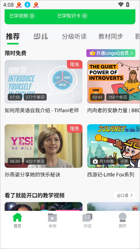 视频资源与对话场景均会持续迭代更新,确保学习内容始终与时俱进,紧跟时事热点与潮流趋势。同时支持导入本地视频进行学习,兼顾个性化学习需求。
