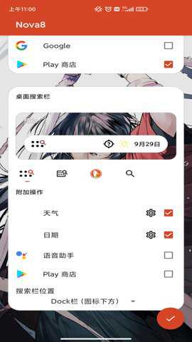 4、最后就是,其他小组件的添加,完成之后就可以点击右下角的“√”,即可开始应用启用nova launcher;