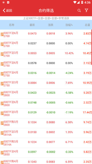 2、点击顶部功能菜单,可查看行情报价、合约筛选、策略交易、股票交易等多项实用功能入口。