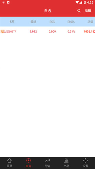 3、登录账户后,进入“自选”栏目,即可查看用户已标记的自选股票信息。